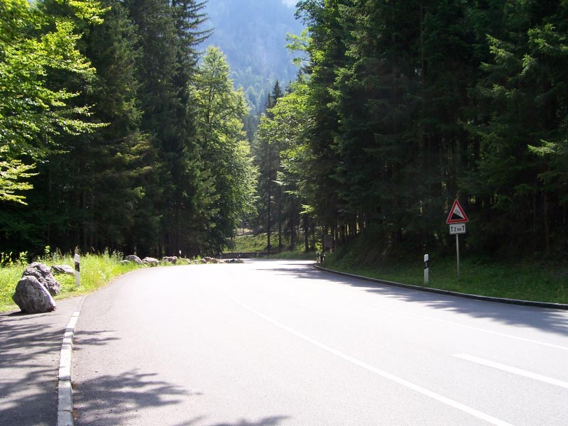 Dopo le fatiche del giorno precedente si opta per un percorso non eccessivamente impegnativo con in programma comunque una piccola salita nel finale che ci farà arrivare al laghetto Eibsee. Ancora una volta sconfiniamo in Germania, in direzione della cittadina di Garmisch-Partenkirchen. Percorriamo dapprima la strada ben conosciuta fino a Mittenwald e poi Klais, quindi seguiamo le indicazioni della ciclabile per Garmisch (lo stradone principale è calorosamente sconsigliato...soprattutto al ritorno visto che è in salita). Poco dopo Klais l'asfalto lascia brevemente spazio ad una sezione in sterrato. Procediamo quindi in leggera discesa, attraverso piccole e rilassanti stradine, fino a Garmisch dove purtroppo ci immettiamo nella strada principale (al ritorno troveremo invece la ciclabile situata sotto la montagna). Dopo qualche chilometro abbastanza stressante seguiamo le indicazione per Eibsee. Dopo aver attraversato in falsopiano il bel paesino di Grainau la strada comincia piano piano a salire con maggiore decisione. Gli ultimi due chilometri nel bosco si rivelano pure duretti, con pendenze spesso al 9-10% e punte al 12-13%. Breve discesa ed arriviamo ai bordi del lago Eibsee dove pranzeremo in un piccolo ristorante. |