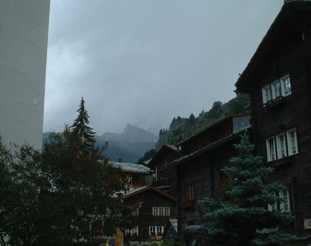 Zermatt paese ed il Cervino dietro le nuvole.