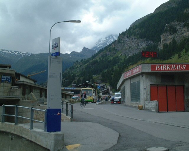Zermatt: sullo sfondo a destra il Cervino mezzo nascosto.